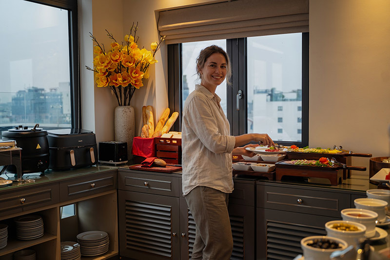 Bên cạnh đó, thực đơn buffet sáng còn bao gồm nhiều lựa chọn tốt cho sức khỏe, detox thanh lọc cơ thể. Đội ngũ đầu bếp giàu kinh nghiệm luôn đổi mới công thức, đảm bảo mỗi ngày bạn đều có trải nghiệm vị giác mới mẻ. Sự tận tâm trong khâu phục vụ, cùng nhịp điệu nhẹ nhàng của buổi sáng Hà Nội, sẽ biến bữa sáng tại Léman trở thành một phần đáng nhớ trong chuyến đi của bạn.